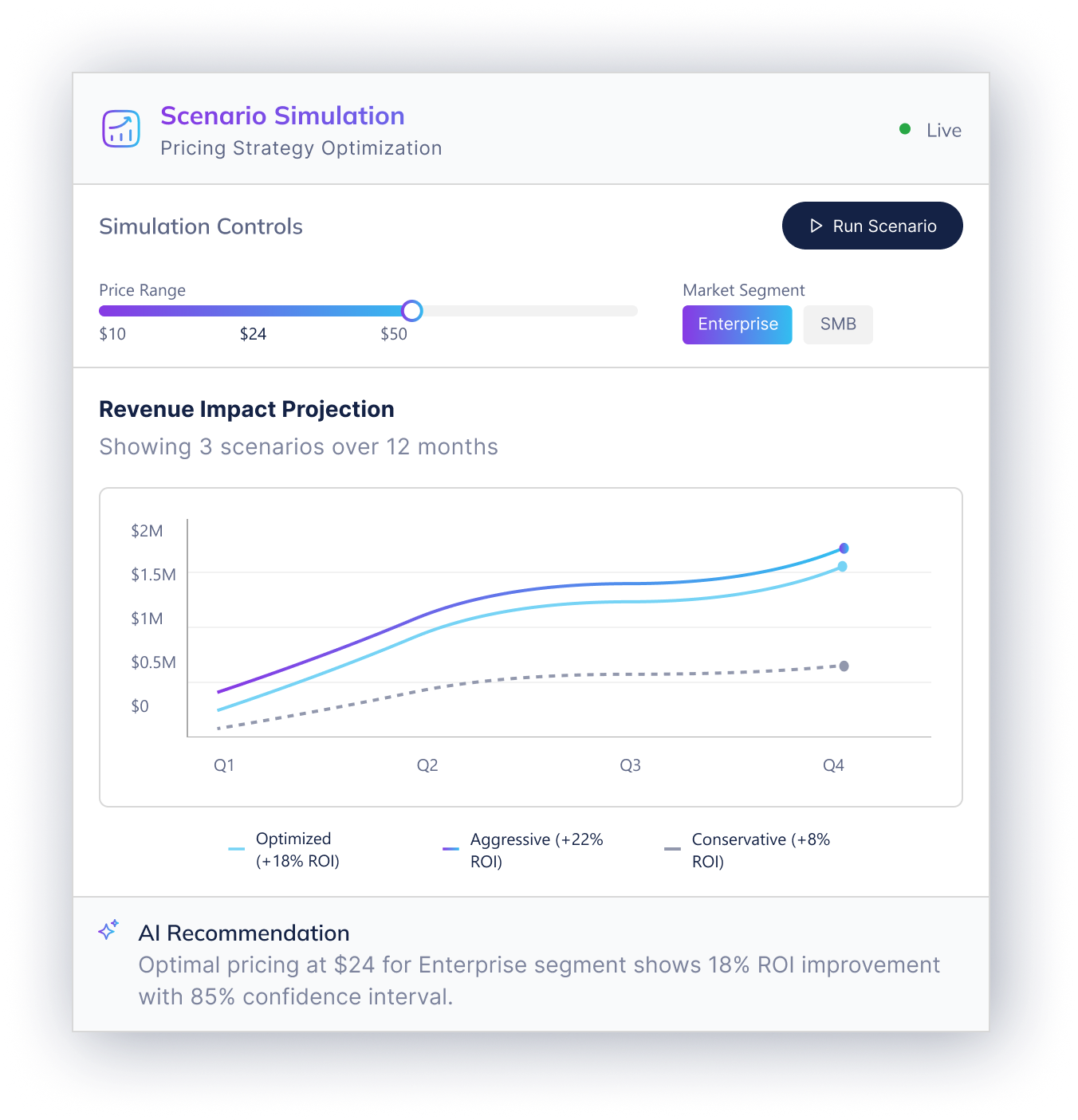 AI-powered predictive modelling helps you find your best indicators, boost forecast accuracy, and monitor and adjust in real time.