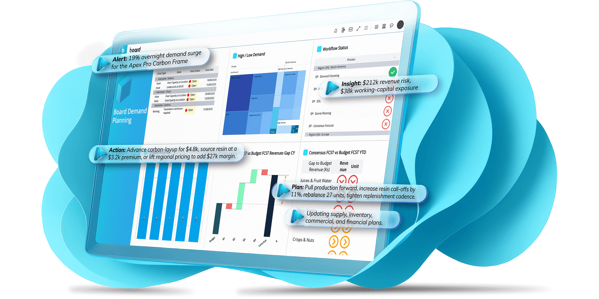 Board Agents augment teams with digital counterparts that accelerate performance across integrated business planning. They help organizations move faster through AI-powered insights, modeling, and reporting; make more confident decisions by enhancing collaboration and workflow efficiency; and align goals by unifying financial strategy with operational execution. The result: a more agile, connected, and data-driven organization that adapts quickly to changing market conditions while driving continuous improvement.