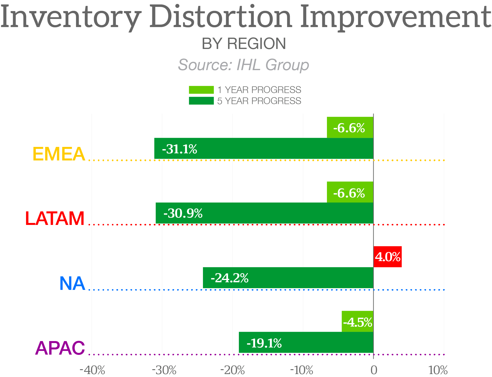 LATAM shows the highest distortion relative to sales (7.9%) but an impressive 30.9% improvement in inventory distortion, driven by targeted optimization strategies tailored to local conditions.