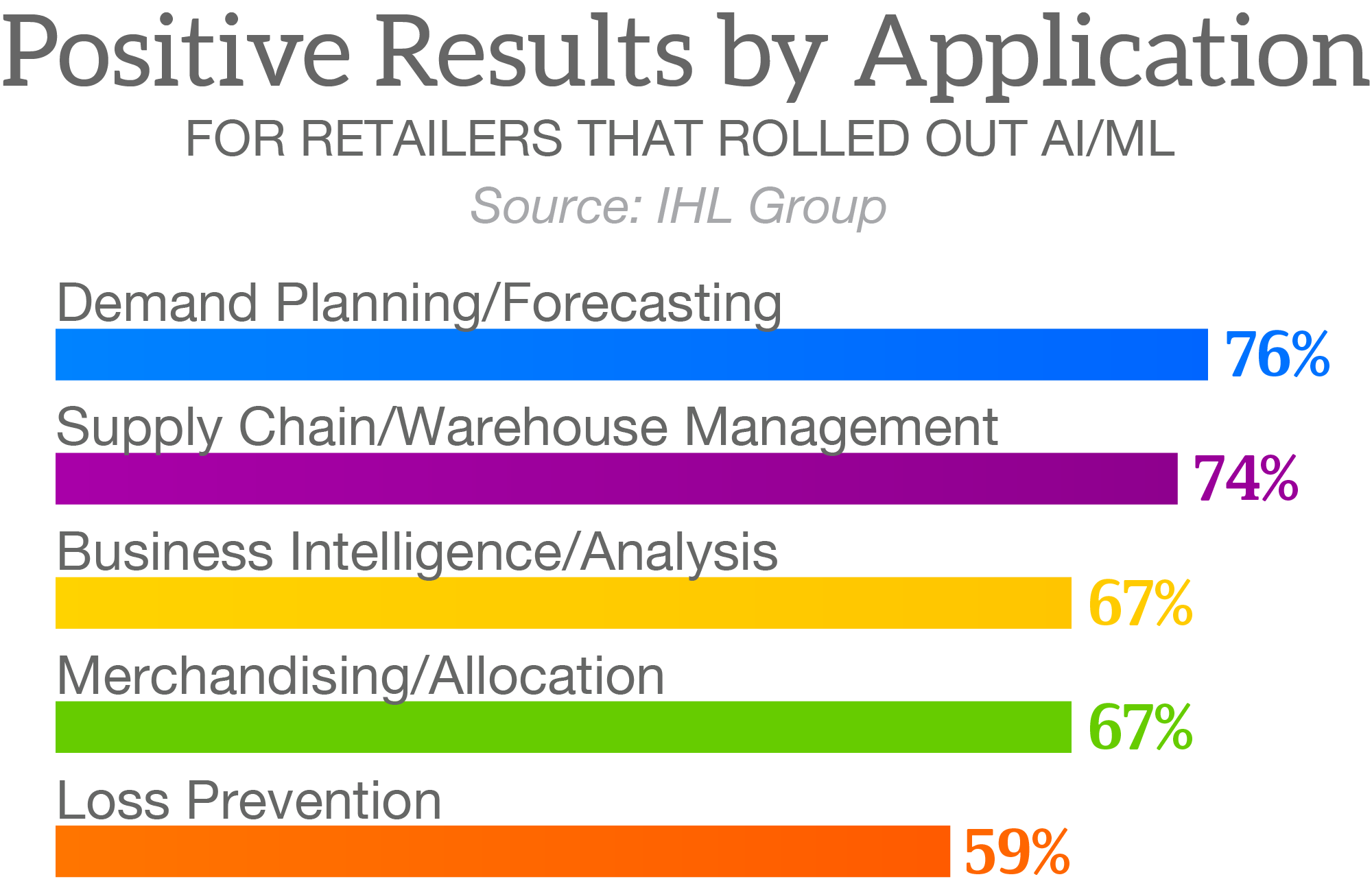 The research reveals why: less than 25% of retailers have successfully rolled out AI/ML in areas most impacted by inventory distortion. Among those who have, the results are dramatic. 76% report positive results in demand planning and forecasting, while retailers using AI/ML expect 50% higher profit growth than competitors.
