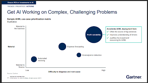 Selon le rapport Leadership Vision for 2025: CFO de Gartner®, la « variabilité des bénéfices » se situe dans le quadrant « fort impact pour l’entreprise / forte difficulté de diagnostic et d’analyse des causes ».