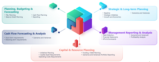 Une gamme complète de cas d’usage pour aligner les objectifs financiers sur les stratégies à long terme, simplifier les processus de budgétisation et de prévision, et optimiser la gestion de trésorerie ainsi que les investissements en capital.