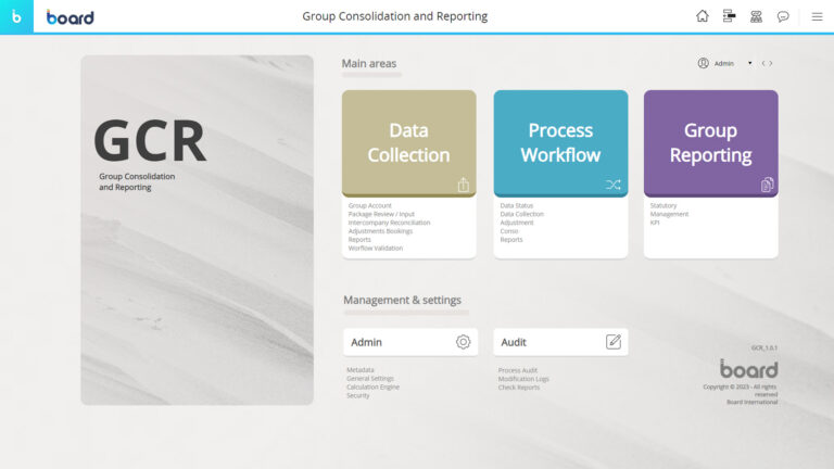 Con i dati consolidati come spina dorsale della gestione delle prestazioni, il Bilancio Consolidato non è più un esercizio isolato e normativo. Board Group Consolidation and Reporting (GCR) offre una soluzione completa per la chiusura finanziaria e il consolidamento, unificata con capacità di pianificazione e reporting su una piattaforma unica.