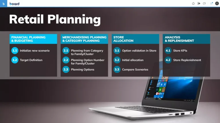 I consumatori sono sempre più attenti alla gestione delle spese; pertanto i retailer specializzati e del settore dei beni durevoli hanno l’esigenza di stabilire prezzi competitivi e offrire promozioni, senza incidere negativamente sulla redditività dell’azienda. Unificando capacità di analytics, simulazione e pianificazione in una singola soluzione, Board consente di prevedere l’impatto che nuove strategie o cambiamenti nella domanda di mercato avranno sui profitti così da aiutare i retailer a prendere la decisione migliore, aumentare l’efficienza in tutta l’azienda e ridurre i costi.