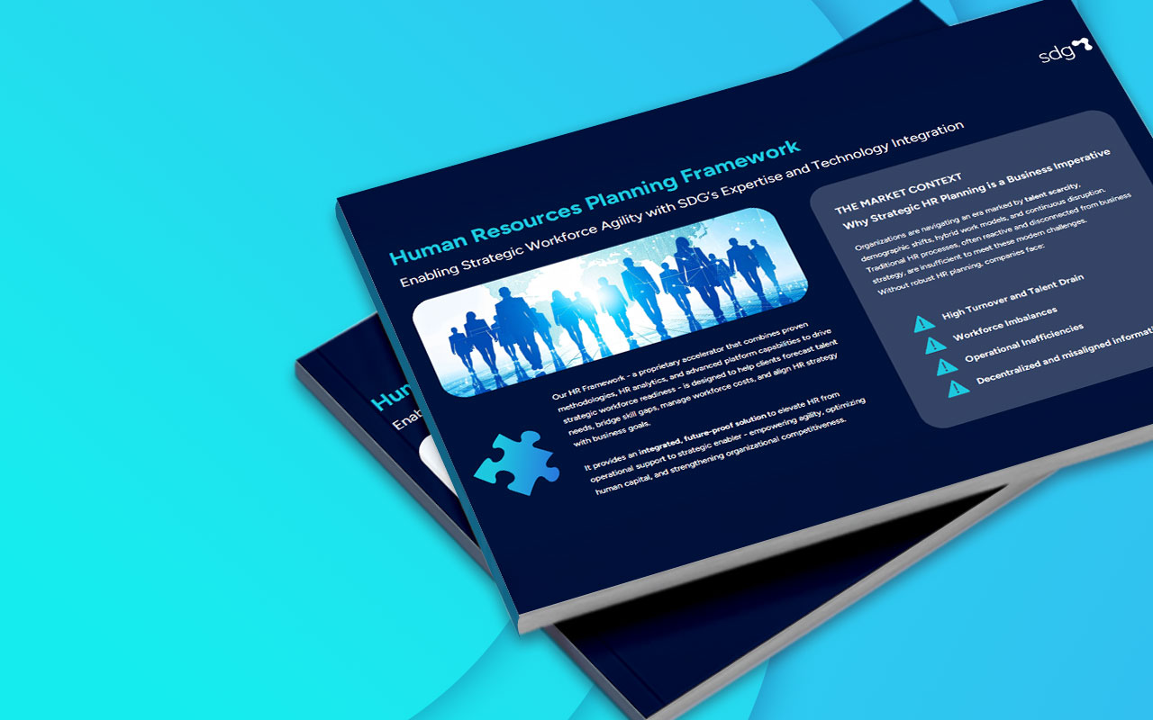 Integrated, agile, and future-proof, the SDG HR Framework is designed to help clients forecast talent needs, manage workforce costs, and align HR strategy with business goals.